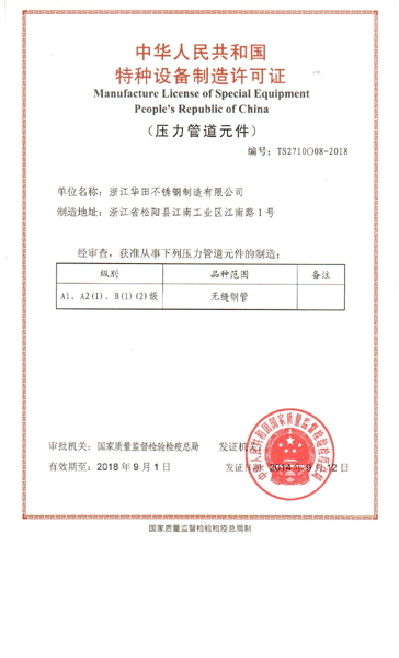 浙江华田不锈钢制造有限公司是一家专业生产不锈钢换热器管的企业,公司拥有员工280余人,高级管理人员22人,工程师10人,高级职称技术人员20人。本公司不仅拥有高素质、高技术的员工团队,同时还配备了齐全的生产流水线和先进的检测仪器,公司有大中小冷拔机组16台,冷轧机组7台。公司检测中心拥有、超声波探伤机、涡流探伤机、水压试验机、力学测式机、德国进口光谱仪以及配套的理化分析设施。从产品原料到生产每道工艺都严格检测、有效控制。 公司拥有压力管道元件制造许可证(A1)级,许可证编码:TS2710O08-2018.浙江省丽水名牌产品,证书编号:2014(工)-046,资质齐全!且常年大量备有GB1329-2013标准的换热器专用管,规格25*2.5、25*2、19*2、19*1.5长度可达30米,材质有:TP304、304L、TP316L、F321、S22053,可以任意切定尺,并可为客户制作波纹管、波节管、U型管及U型管试压,5天可以交货。行业内交货期最快! 同时非常感谢社会各界同仁多年来对我公司的支持与厚爱,公司坚持“质量第一、信誉至上、真诚服务、以人为本、和谐发展”的经营理念,以“领先国内,走向世界”为目标,“华田钢管,通向全球”的发展蓝图,我们将以坚持不懈的奉献精神和优质的产品、低廉的价格竭诚为您服务,望广大新老客户前来洽谈业务。我们将与您携手共创辉煌!